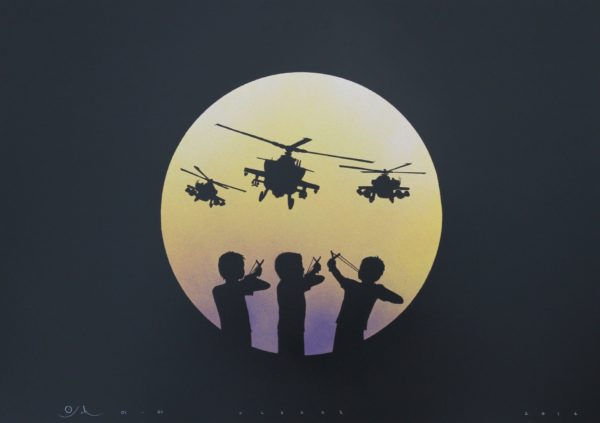 1 Colour Screen Print on 300gsm Paper with hand spayed sunset so each one is slightly different.
