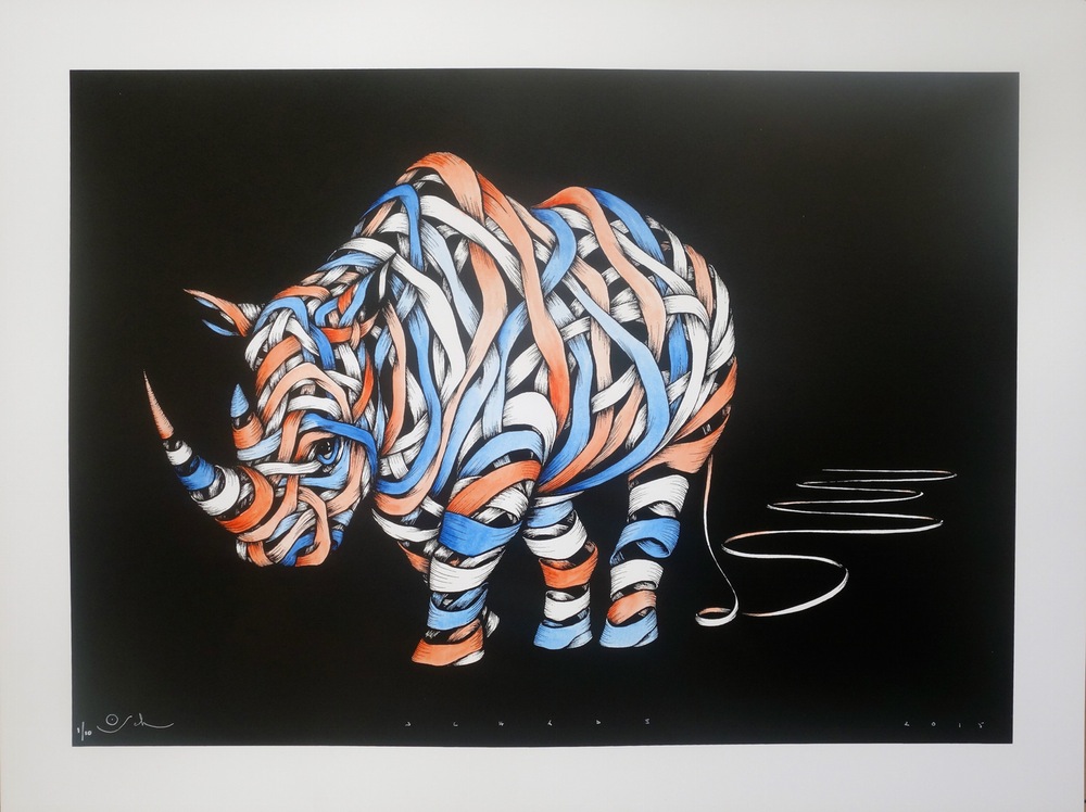 1/10 All Unique. Signed & numbered by the artist. Dimensions: 66 x 50cm. 1 Coloured hand pulled silk screen print on 300gsm Paper hand finished in windsor & newton inks by the artist