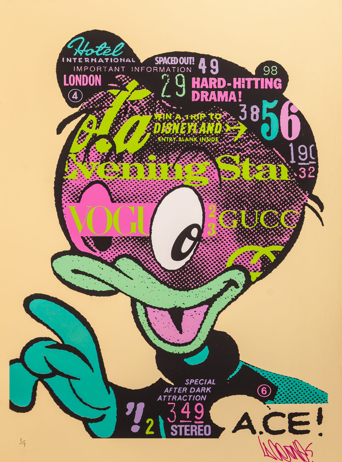 Edition of 7. Signed by the artist. Dimensions: 45 x 64cm 7 colour screen print on gold shiny art paper with uv black inks. Year 2013