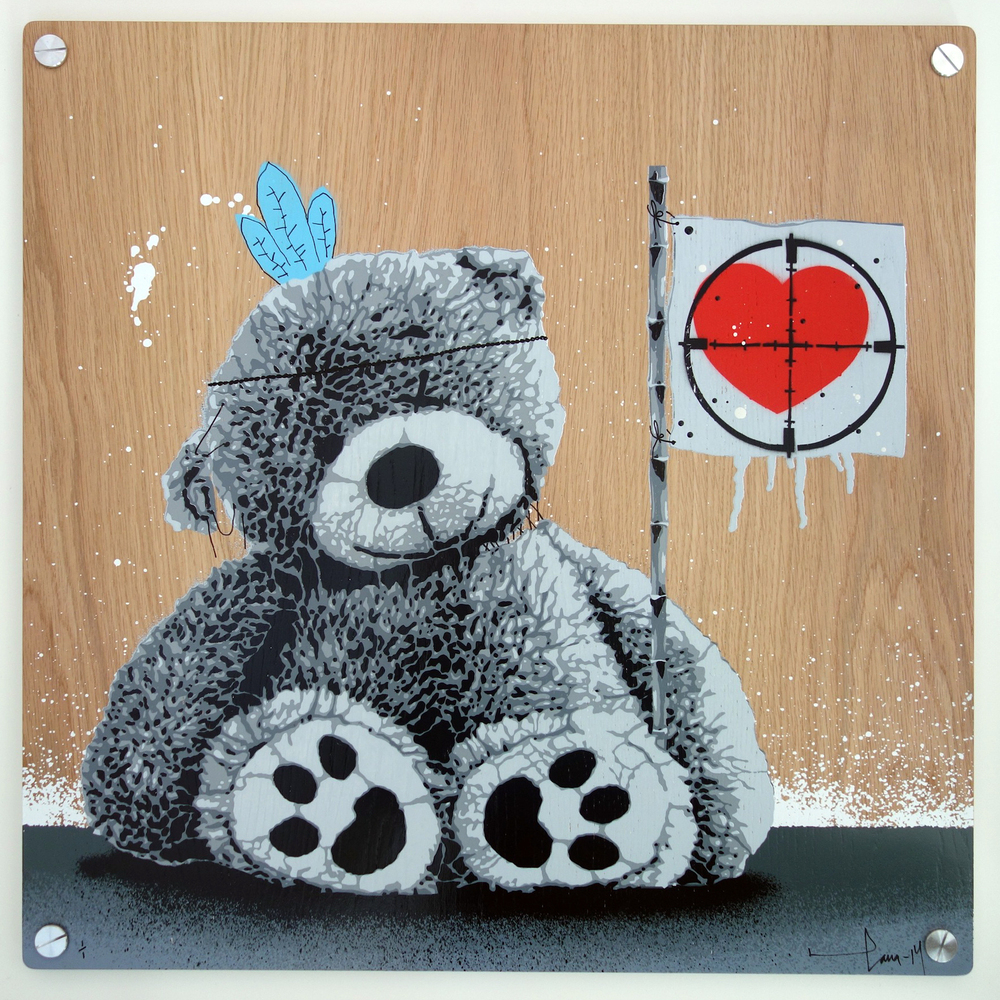 unique 1/1 5 colour screen print on 12 mm birch wood flag, bear and background hand finished by the artist signed and numbered by the artist Dimensions: 55 x 55 cm all come with a super smart h