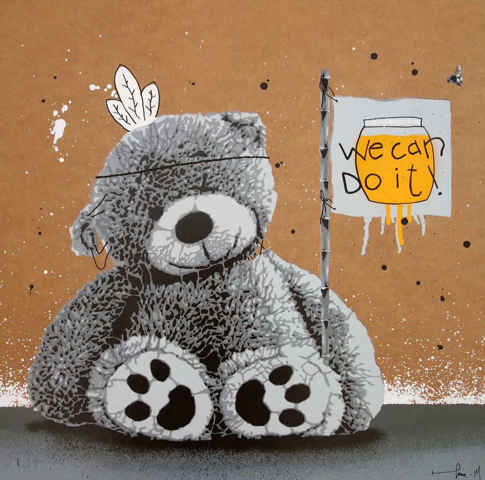 unique 1/1 5 colour screen print on 280 Gsm kraft Paper flag, bear and background hand finished by the artist signed and numbered by the artist Dimensions: 55 x 55 cm