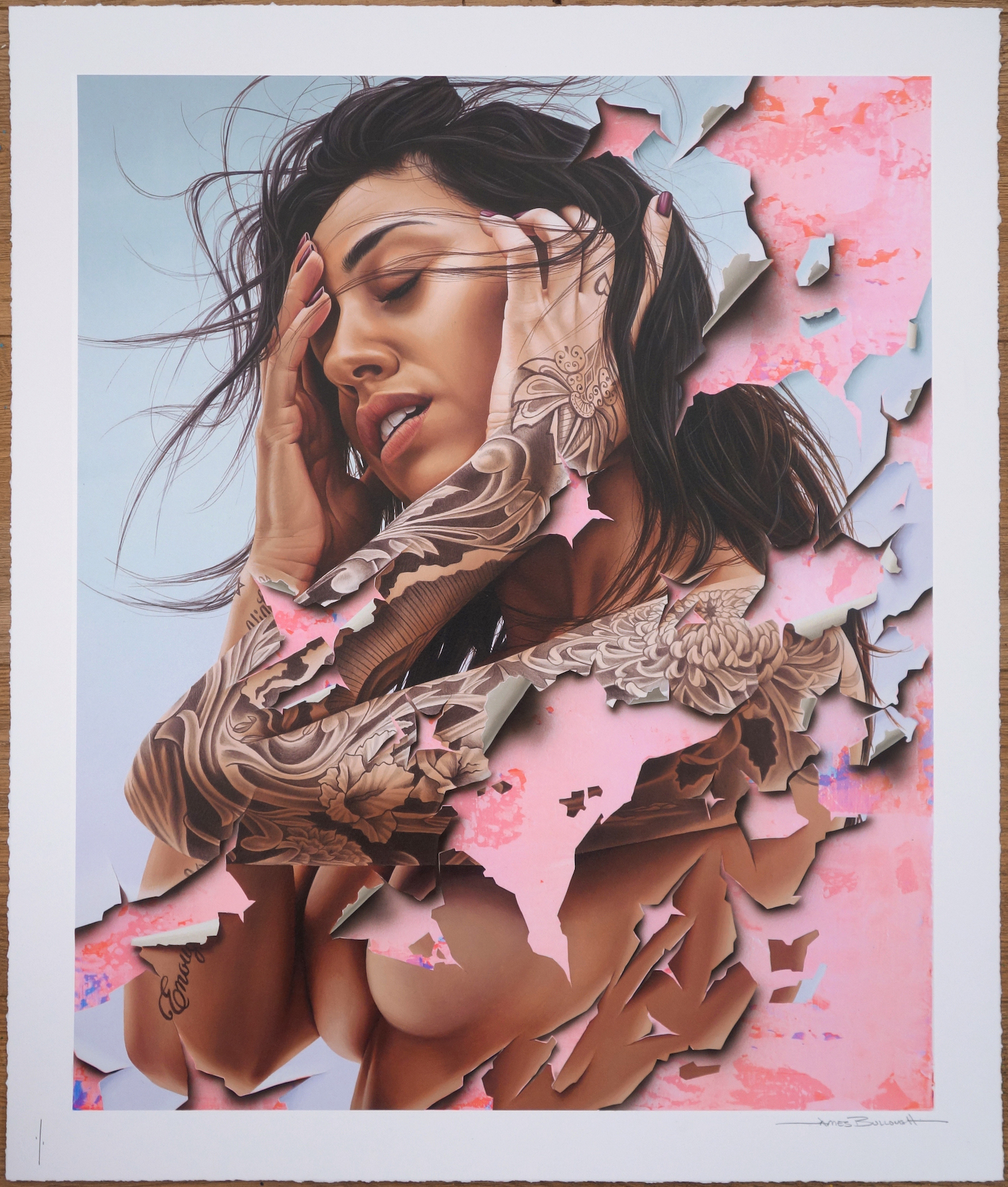 Giclee Print with screen printed Varnish on 300 somerset paper. 1/1 – Unique Hand Painted size ? 58 x 68cm signed by the artist. 2018
