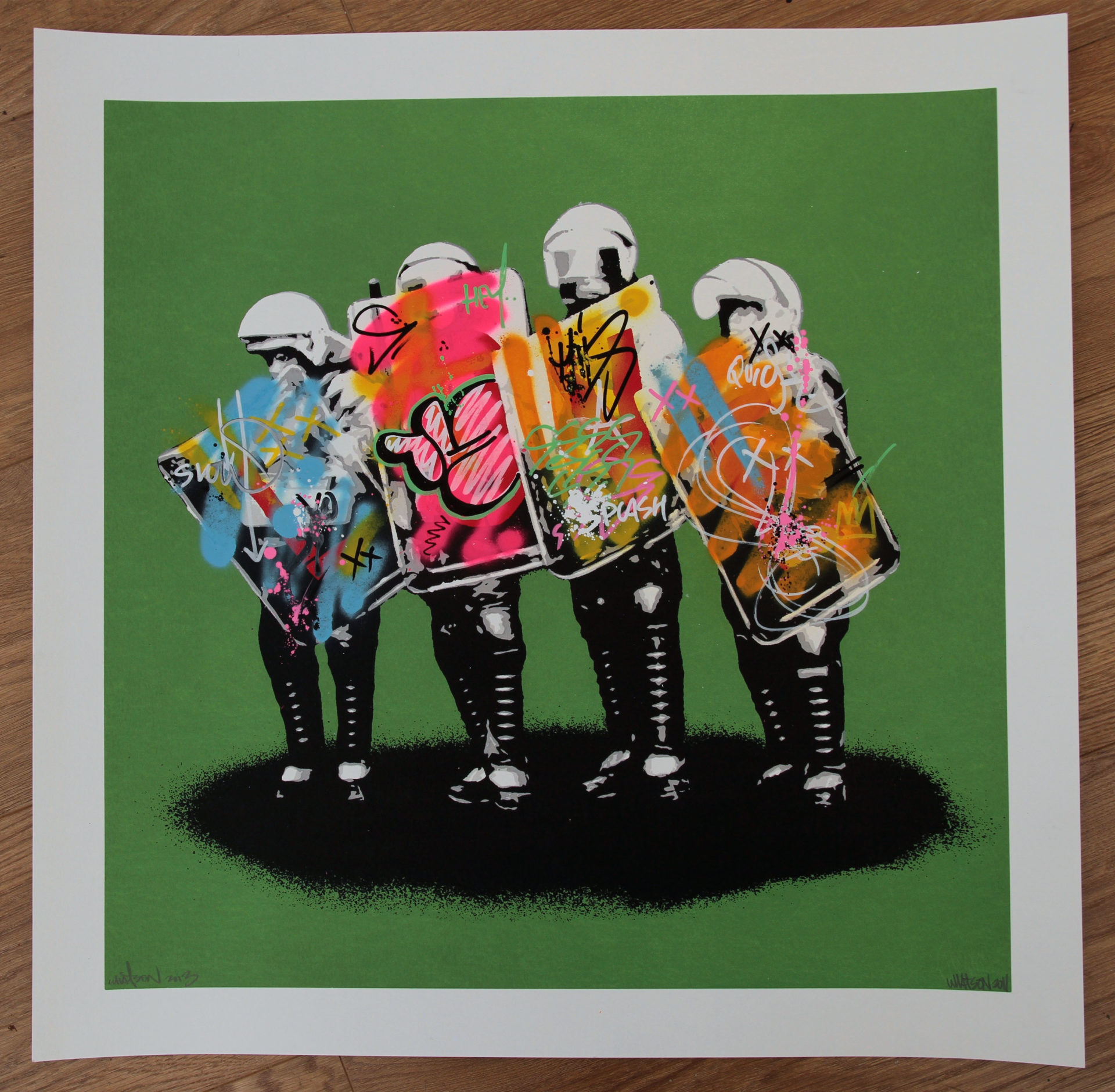 1/1 unique 2013 remix signed and stamped by the artist 4 colour screen print on 300 fine art paper hand finished by the artist Dimensions: 60 x 60 cm year 2013