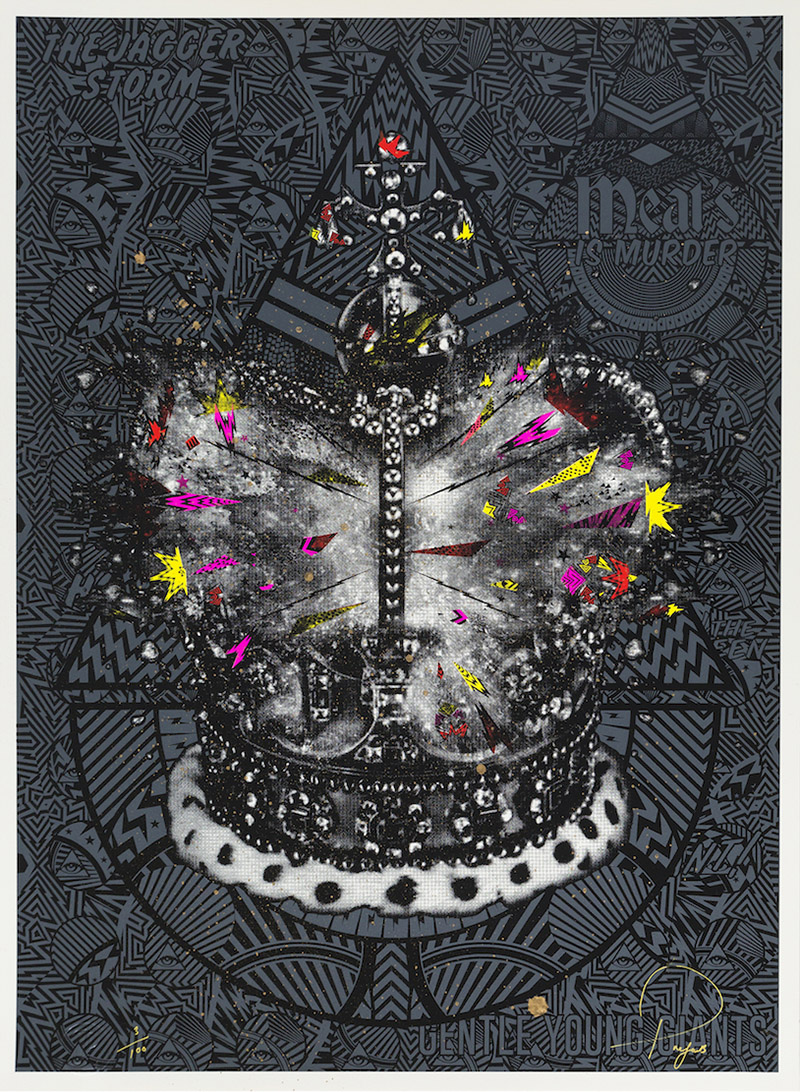 5 colour screen print on Somerset 300gm paper hand finished with metallic gold spray paint 56 x 76 cm signed stamped and numbered by the artists edition of 100