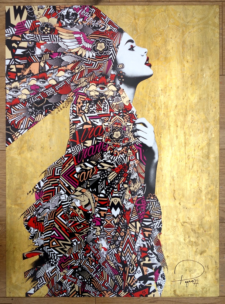 7 Colour screen print on 1MM Corroded Brass with printed pattern